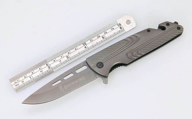 勃朗宁367快开战术折刀 全 长:20.8cm 刃 长:9cm 柄 长:12cm 刃 宽:2.7cm 刃 厚:3.2mm 刃 材:3Cr13Mov 重 量:231g(含包装) 硬 度:56HRC 表 面:灰钛 柄 材:全钢灰钛 锁 型:线锁 包 装:彩盒 备 注:带腰夹、玻璃椎、割绳器
