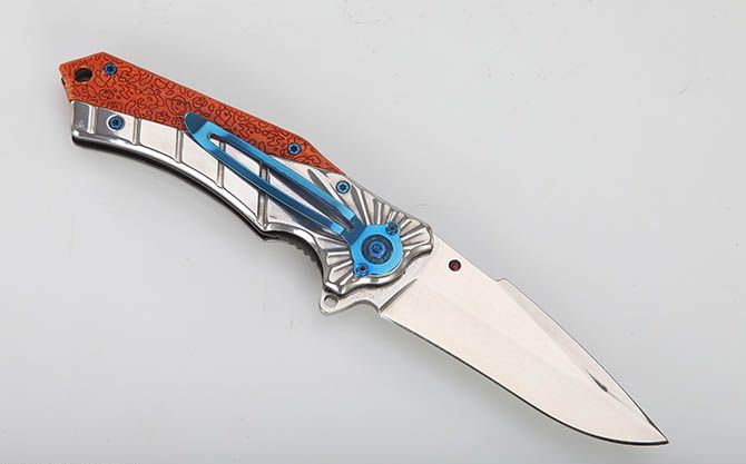 勃朗宁368白镜光快开折刀 全 长:20.5cm 刃 长:9cm 柄 长:12cm 刃 宽:3cm 刃 厚:3.4mm 刃 材:3Cr13Mov 重 量:220g(含包装) 硬 度:56HRC 表 面:镜光 柄 材:镜光全钢+彩木雕花柄片 锁 型:线锁 包 装:彩盒 备 注:带腰夹