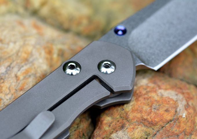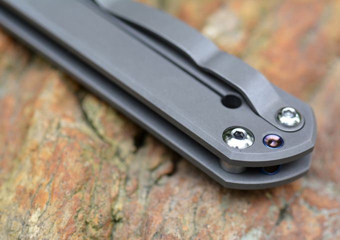 全长:174mm 折合:101mm 刃长:74mm 刃宽:22mm 刃厚:3mm 柄厚:10mm 重量:130g 刃材:德国D2 硬度:59-61HRC 刃面:石洗 柄材:日本进口钛合金TC4(表面喷砂处理) 定位珠:德国FAG陶瓷定位珠 刀夹:弹簧钢特制 所有轴件440不锈钢硬度HRC50 所有螺丝420不锈钢硬度HRC45 钛合金锁定面做热处理硬度HRC43 黄铜垫片,精密铜油槽轴套设计,可有效增加开合顺滑度