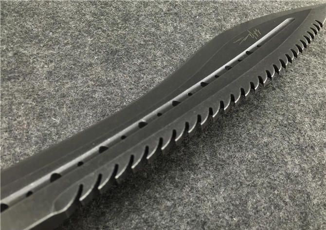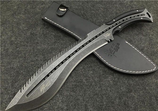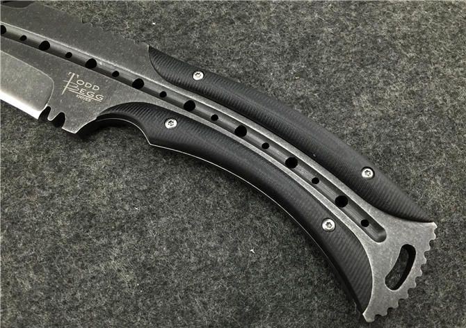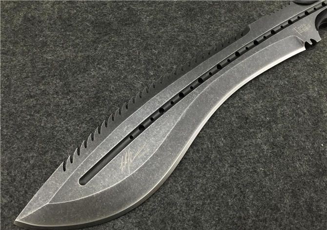 托德·贝格—恶龙狗腿(沧桑石洗手工版) 全 长:355mm 刃 长:23mm 柄 长:120mm 刃最宽:55mm 刃 厚:6mm 刃 材:8cr18mov 重 量:560g(含包装) 硬 度:59HRC 表 面:沧桑石洗 柄 材:钢一体柄+G10条 锁 型:定锁 其 他:配牛皮套