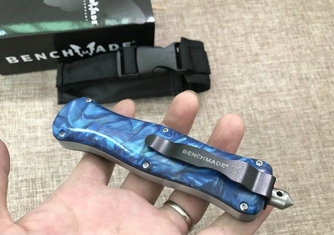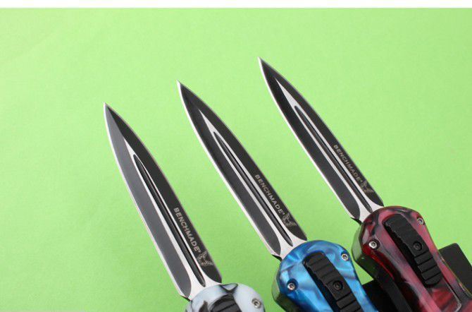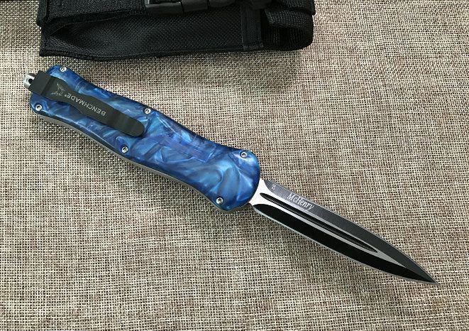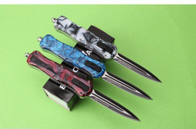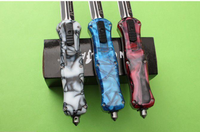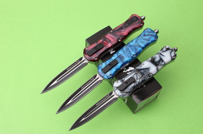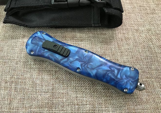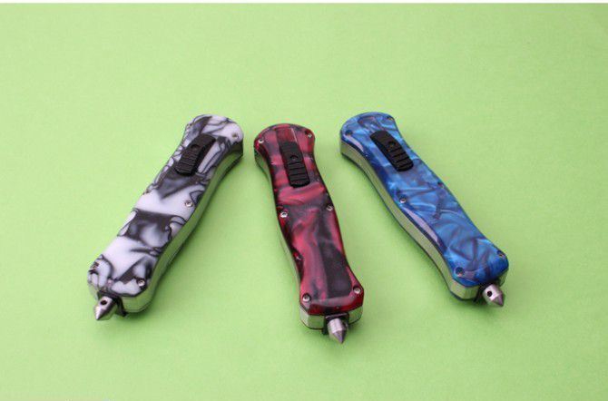 新版蝴蝶蜂王刺(红、蓝、白柄) 全 长: 23cm 刃 长: 9.6cm 刃 厚: 2.8mm 刃 材: 440 硬 度: 57HRC 刀 重: 201g 毛 重: 277g 表 面: 氧化黑 柄 材: 锌铝合金+树脂 刀 鞘: 尼龙 锁 闭: 直出弹簧刀