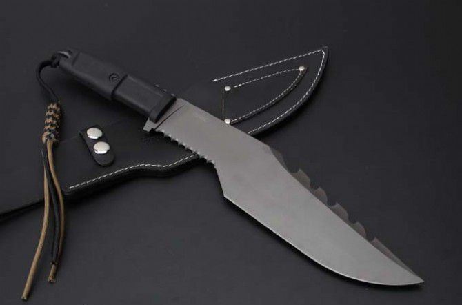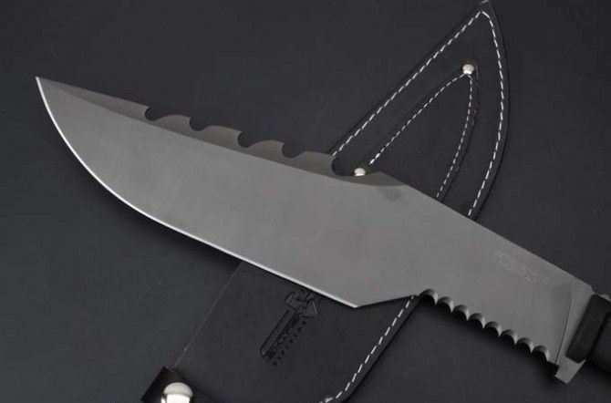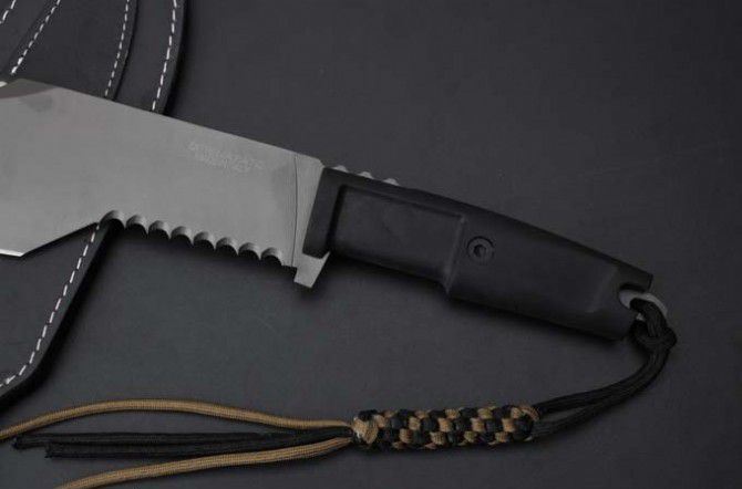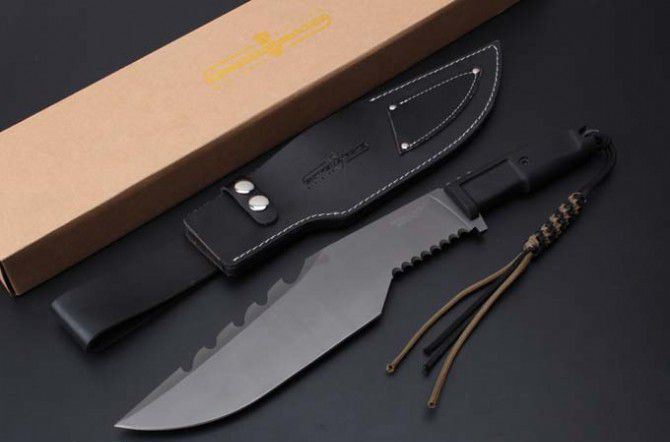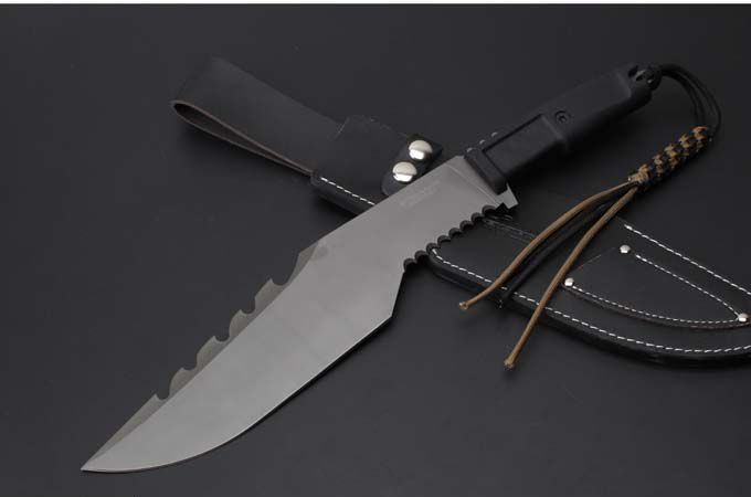 极端武力Extrema RatioKH极度求生弯刀 全 长:420mm 刃 长:285mm 柄 长:133mm 刃 宽:65mm 刃 厚:6mm 刃 材:7Cr13Mov 重 量:872g(含包装) 硬 度:56HRC 表 面:镀灰钛 柄 材:ABS注塑 其 他:硬纸盒+皮套