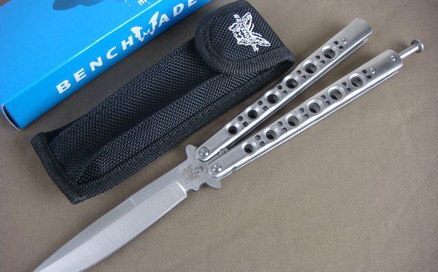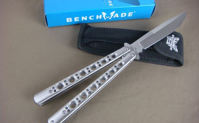 Benchmade.42蝴蝶刀(白色,普标版) 全 长:24.0cm 刃 长:9.2cm 柄 长:13.5cm 刃 宽:1.9cm(最宽处) 刃 厚:2.8mm 刃 材:440 硬 度:56HRC 刀 柄:钢柄 表 面:砂光 重 量:160.0克 配尼龙袋,原厂包装