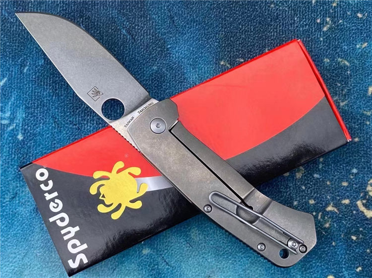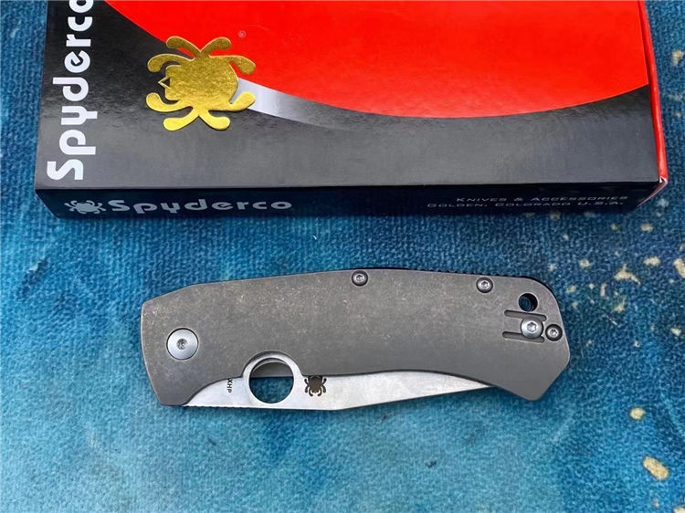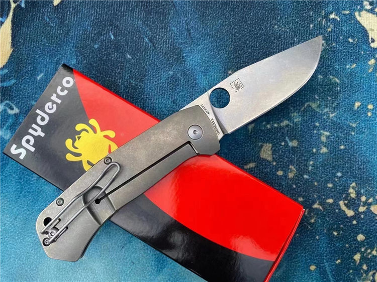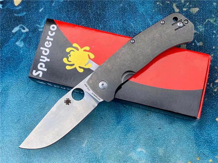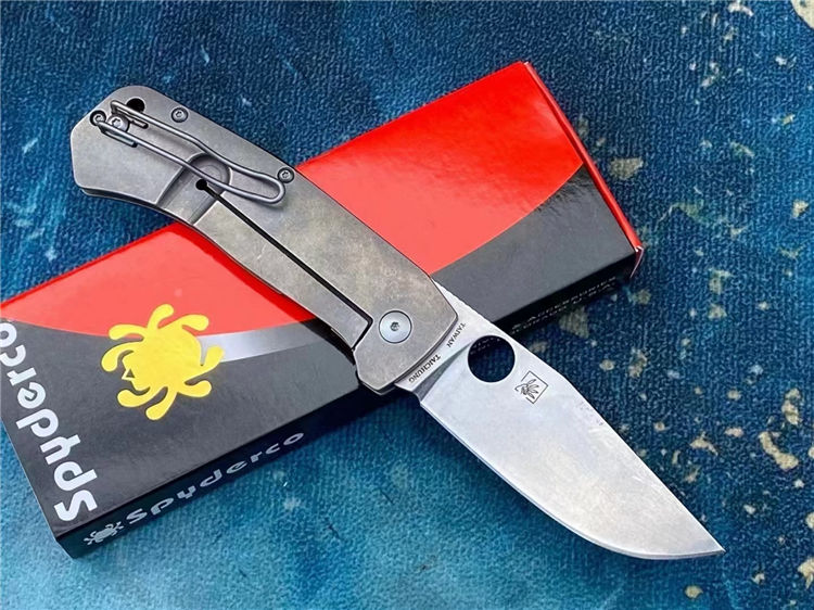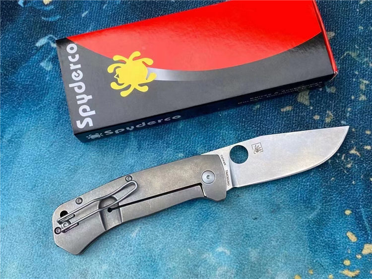 蜘蛛C186复刻版折刀 总长:20cm 刃长:8.7cm 刃厚:3.5cm 材质:D2 柄长:11.2cm 硬度:60HRC 表面:珠光石洗 柄材:TC4钛合金 表面:石洗 系统:铜垫片系统 净重量:168g 包装:彩盒