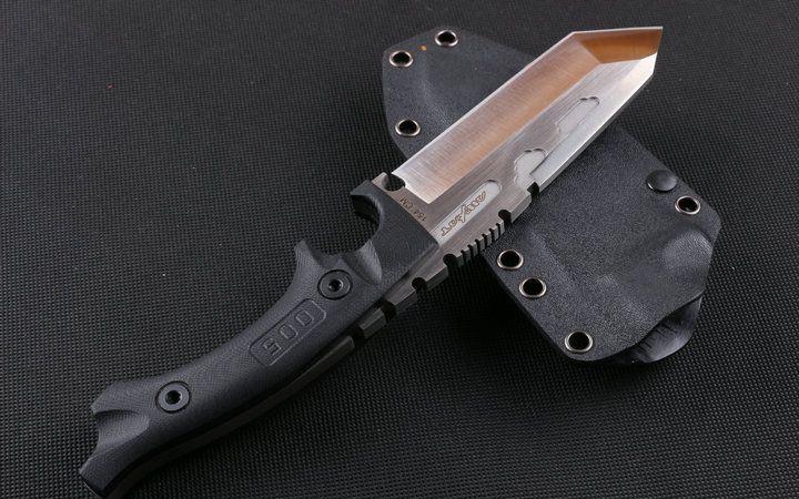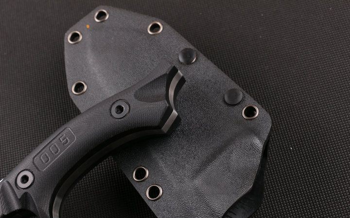 全长:26cm 刃长:11cm 刃厚:0.65mm 刃宽:4.5cm 柄长:13.8cm 刃材:145CM 刀重:400克 总重:650克 表面:砂光伴拉丝 柄材:黑色G10 硬度:60C(真空处理) 刀鞘:战术K鞘(美国进口Kydex板材) 包装:黑色礼品盒