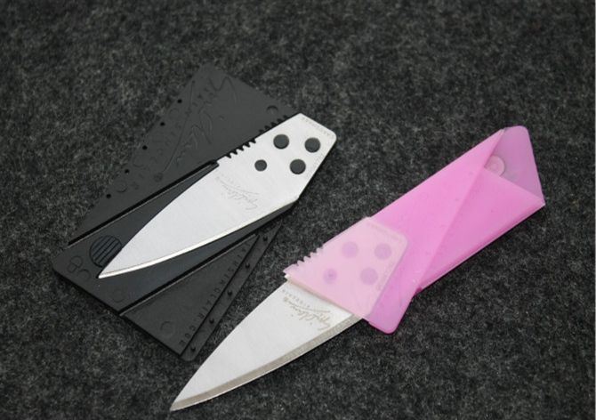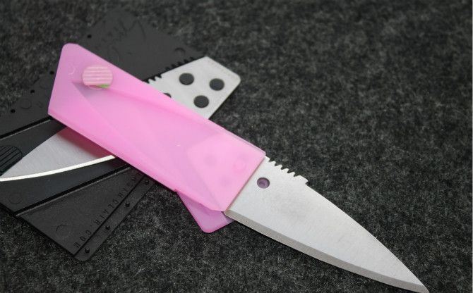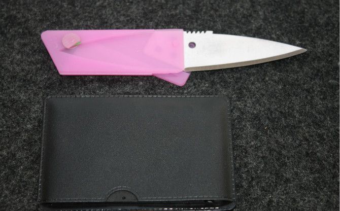礼品信用卡随身折叠刀(粉红色、黑色柄)