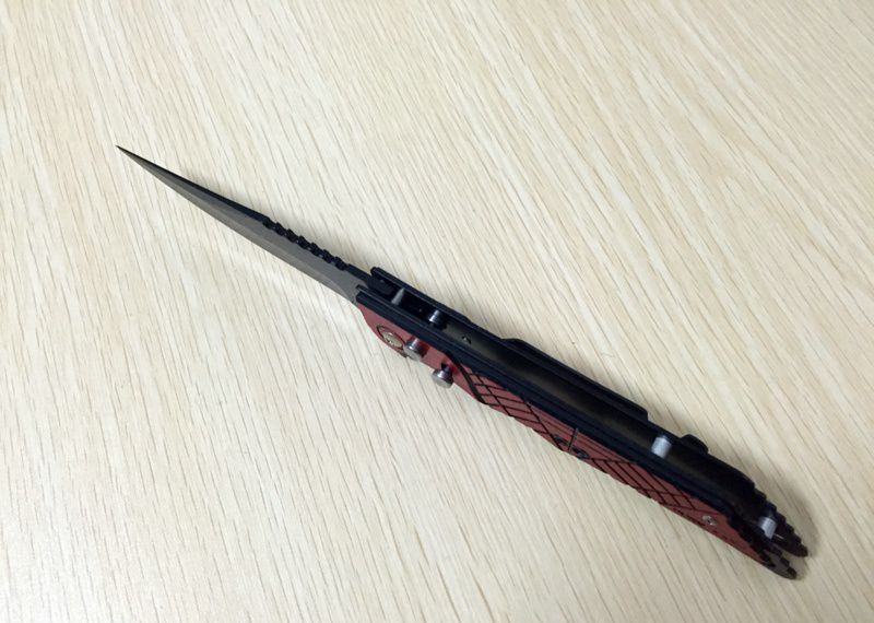 KK529侧跳弹簧跳刀(红柄) 全 长:220mm 刃 长:95mm 柄 长:125mm 刃 宽:21mm 刃 厚:2mm 刃 材:420 重 量:112g(含包装) 硬 度:56HRC 表 面:发黑 柄 材:不锈钢+铝材