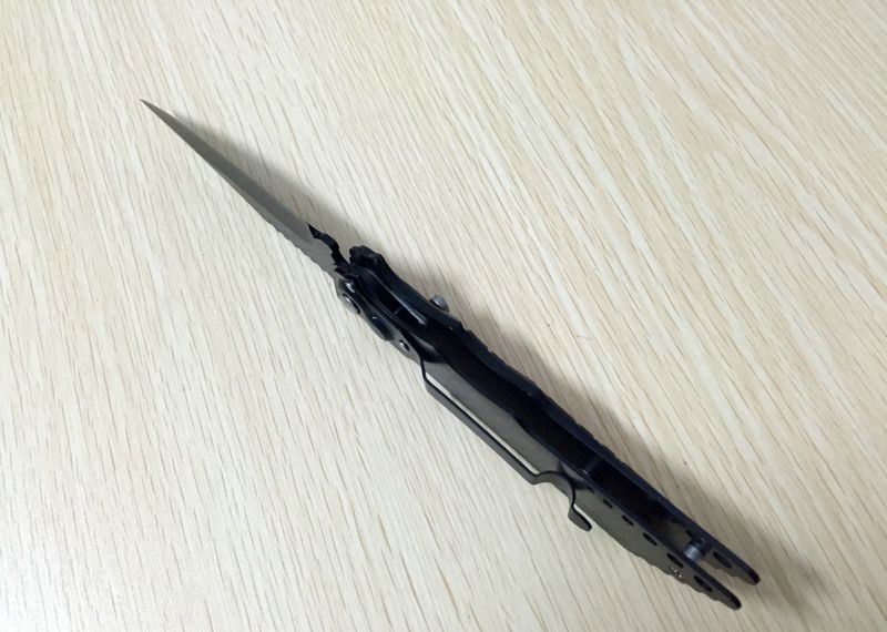 全 长:220mm 刃 长:95mm 柄 长:125mm 刃 宽:21mm 刃 厚:2mm 刃 材:420 重 量:112g(含包装) 硬 度:56HRC 表 面:发黑 柄 材:不锈钢+铝材