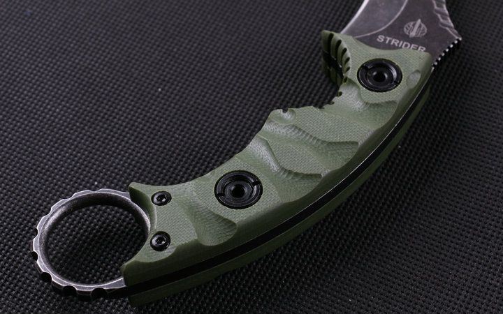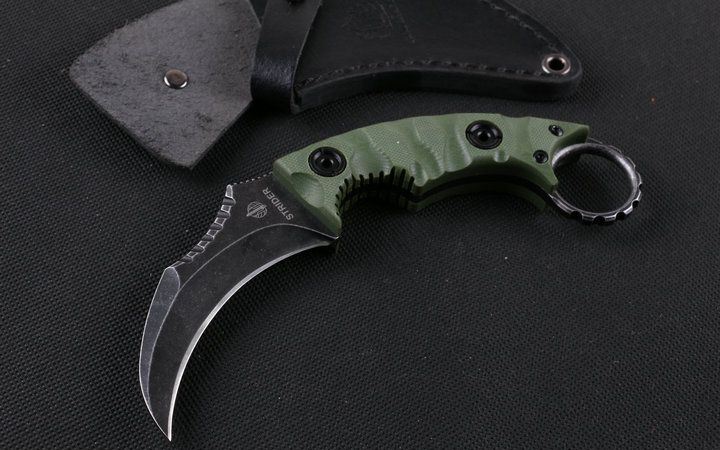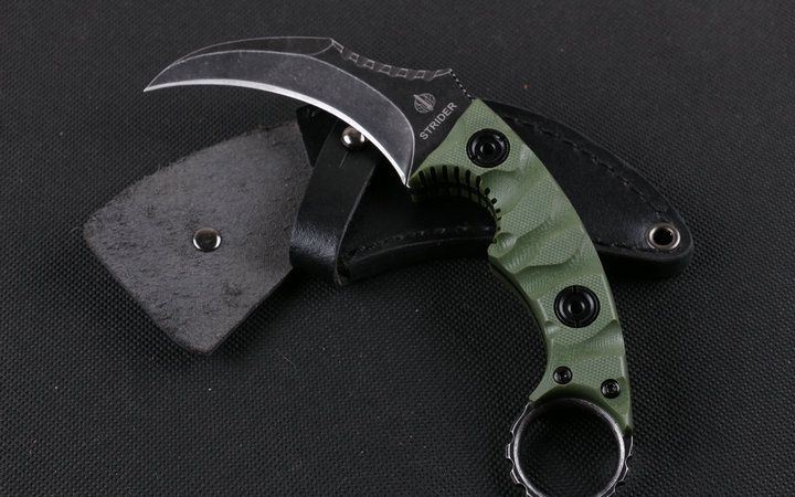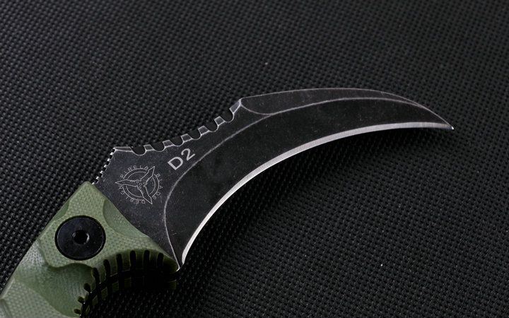 挺进者极速防卫爪石洗 全 长:179mm 刃 长:86mm 柄 长:120mm 刃 宽:31mm 刃 厚:4.9mm 刃 材:D2 刀 重: 200g 重 量:400g(含包装) 硬 度:57HRC 表 面:石洗纹 柄 材:沙漠色G10柄 锁 型:定锁 其 他:皮套