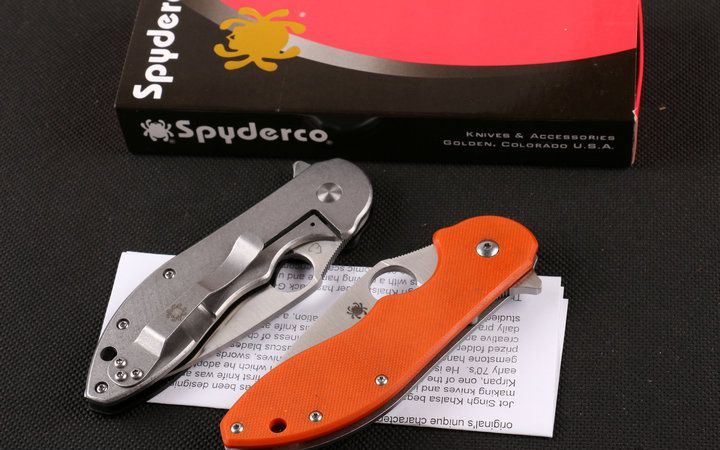 蜘蛛C41CTS折刀(两色) 全 长:195mm 刃 长:75mm 柄 长:116mm 刃 宽:32mm 刃 厚:3.3mm 刃 材:9CR18MOV 重 量:150g(含包装) 硬 度:58HRC 表 面:砂光 柄 材:正边黑色,橙色G10,反面钢片.下单注明。 锁 型:线锁 其 他:配彩盒和出世纸