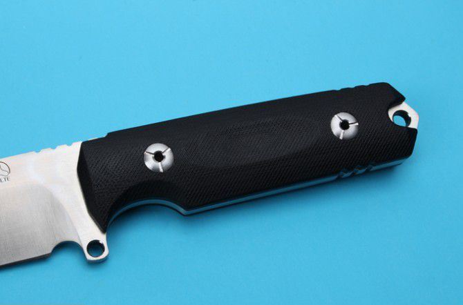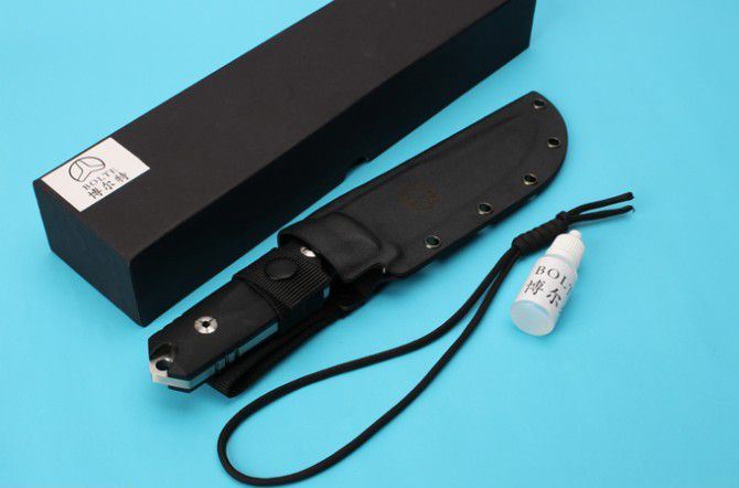博尔特征伐直刀 全 长: 265mm 刃 长: 131mm 刃 厚: 6.0mm 刀 宽:35.5mm 表 面: 精美纯手工砂光,幼拉丝 类 型: 以锋利度.韧性保持度.砍削最出色,超强立体感刃线 开刃方式:二次开刃 刃 材: D2 热处理方式:真空淬油深冷热处理 硬 度: 不低于60-61HRC 柄 材: 黑色G10 净 重: 364克(不含包装) 刀 鞘: K鞘