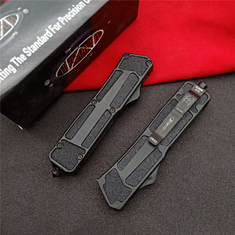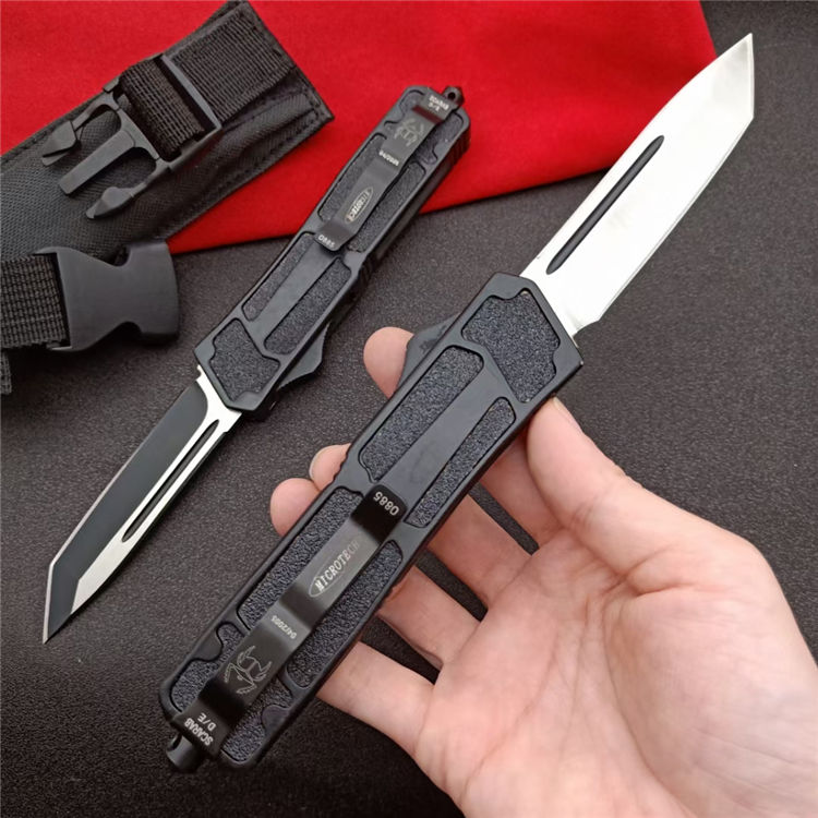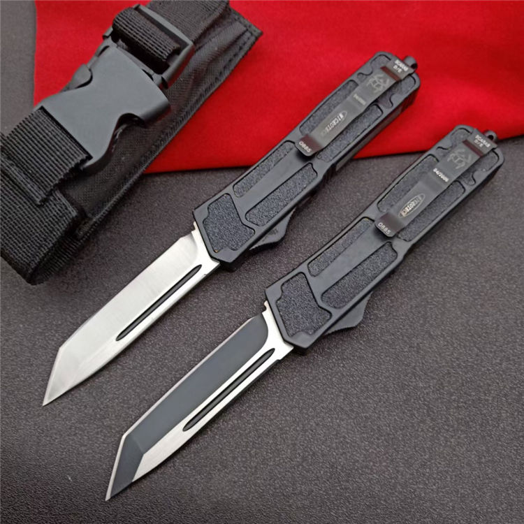微技术圣甲虫T头单锋(砂光) 开启长度:21.8CM 合起长度:13.2CM 刃 厚:0.3CM 硬 度:57 HRC 刃 材:440c 表 面:发黑 把 手:航空铝合金+钢砂 净 重:180克(整刀) 毛 重:250克(含包装物) 开 合:双动作,直推开关,自动弹出和收回(刀头比较牢固,只有很轻微的摇动) 包 装:耐磨专用战术尼龙套 口袋刀夹:弹簧刀夹 玻璃敲击器:钨质玻璃敲击器