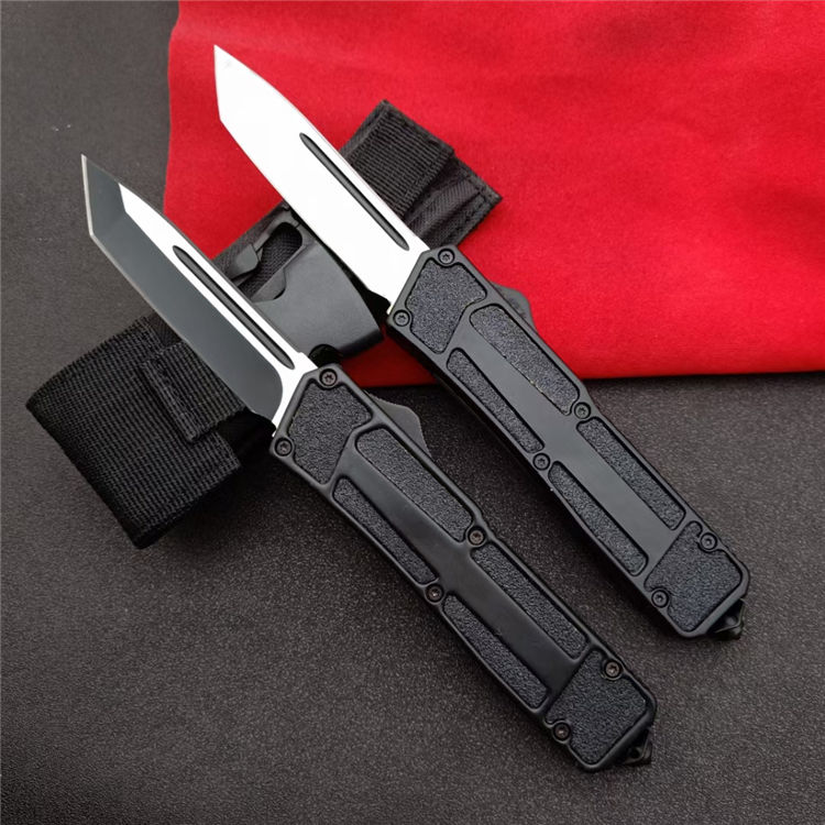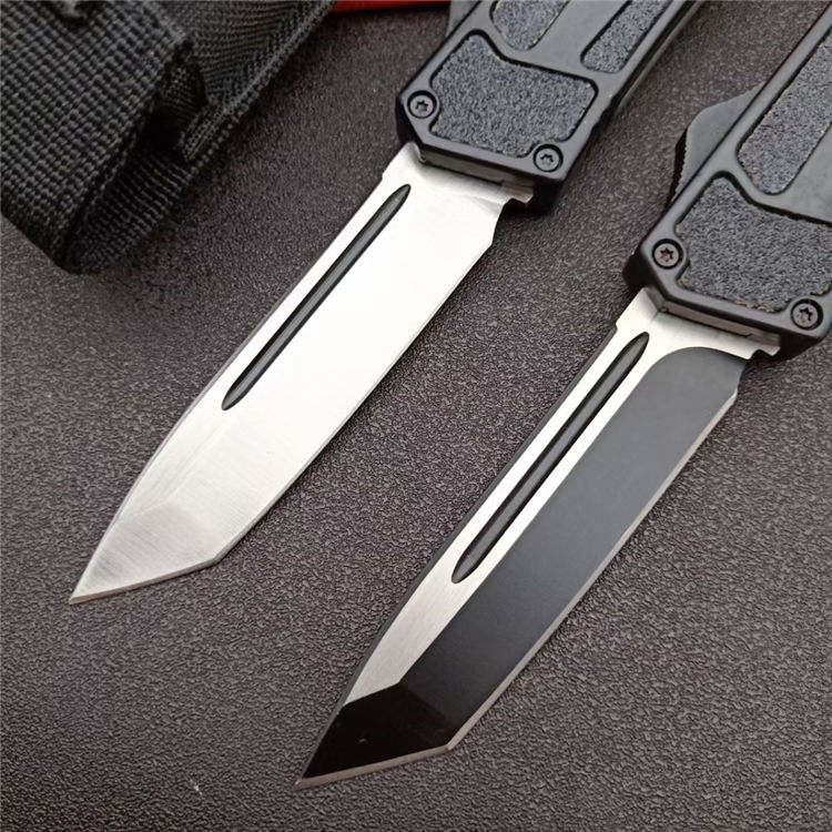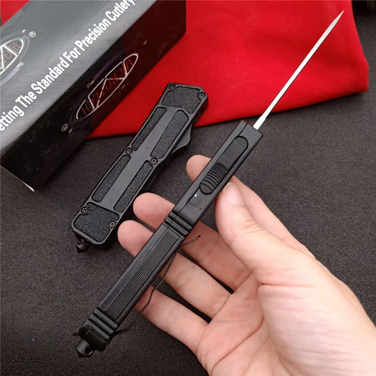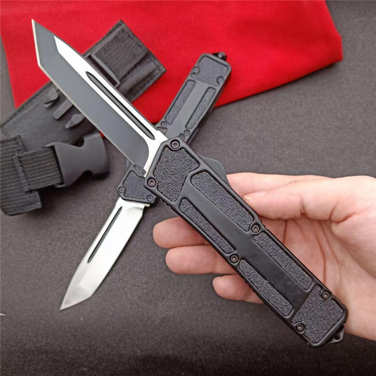 开启长度:21.8CM 合起长度:13.2CM 刃 厚:0.3CM 硬 度:57 HRC 刃 材:440c 表 面:发黑 把 手:航空铝合金+钢砂 净 重:180克(整刀) 毛 重:250克(含包装物) 开 合:双动作,直推开关,自动弹出和收回(刀头比较牢固,只有很轻微的摇动) 包 装:耐磨专用战术尼龙套 口袋刀夹:弹簧刀夹 玻璃敲击器:钨质玻璃敲击器