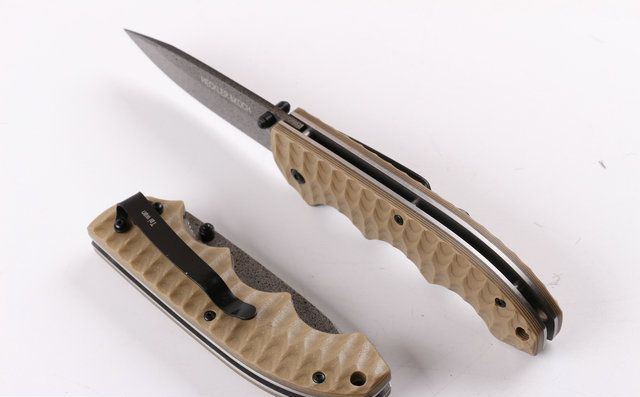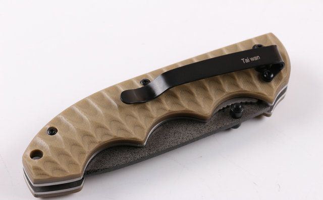 德国沙漠鹰折刀 全 长:20CM 刃 长:8.4CM 柄 长:11.5CM 刃最宽:2.5CM 刃 厚:3mm 刃 材:8cr18mov 重 量:142克 硬 度:58HRC 表 面:滚石涂层(不容易掉) 柄 材:强化G10 锁 型:线锁 其 他:白纸盒子