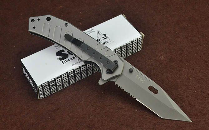 全长:21.1cm 刃长:9cm 柄长:12.2cm 刃厚:0.29cm 刃宽: 2.7cm 刃材: 440C 柄材: 扎纹全钢 硬度: 56HRC 净重:200克 锁定:线锁 表面处:全钛 其他:原厂彩合