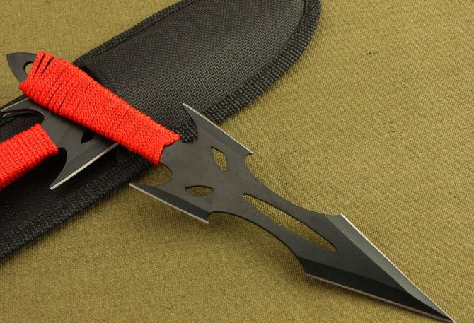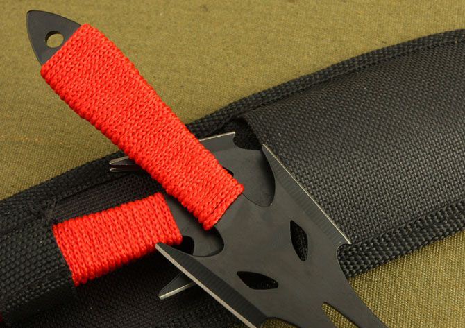 超人飞镖(三支装) 全 长:21cm 刃 长:13.3cm 柄 长:8cm 刃 宽:3.6cm(最宽处) 刃 厚:2.8mm 刃 材:440 硬 度:55HRC 表 面:发黑 重 量:230克 备 注:带尼龙袋