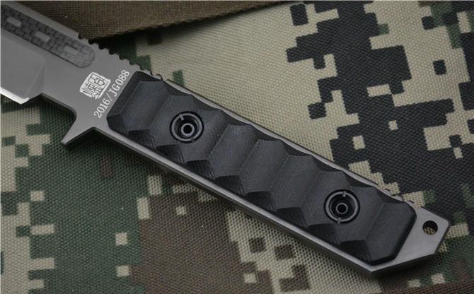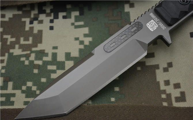 全长:289MM 刃长:134MM 刃宽:33MM 刃厚:8.0MM 刃面处理:镀枪钛,钢本拉丝 热处理:真空油淬热处理 硬度: 58HRC 材料:918钢材 柄材:黑色G10 刀鞘:进口K鞘 包装:黑色礼品盒