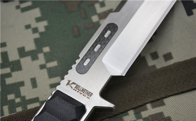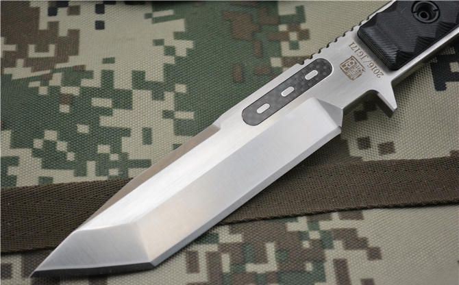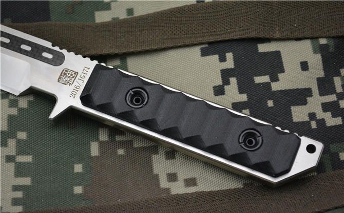 全长:289MM 刃长:134MM 刃宽:33MM 刃厚:8.0MM 刃面处理:钢本拉丝 热处理:真空油淬热处理 硬度: 58HRC 材料:918钢材 柄材:黑色G10 刀鞘:进口K鞘 包装:黑色礼品盒