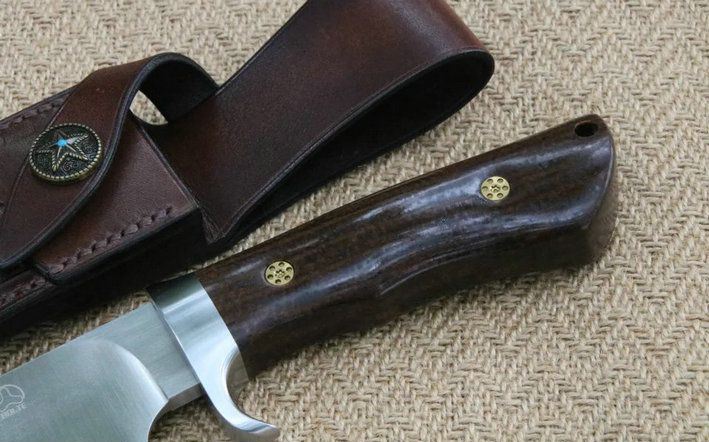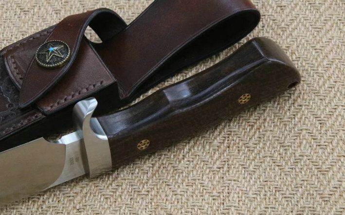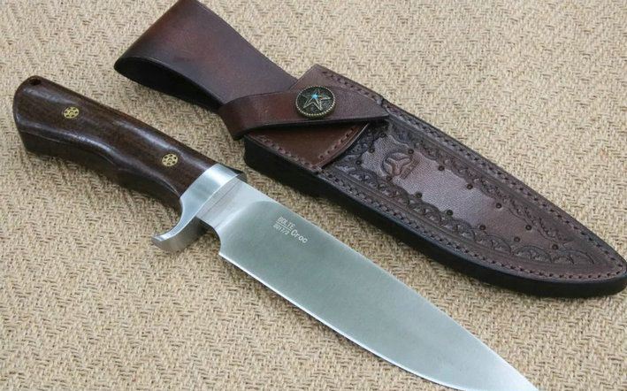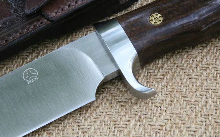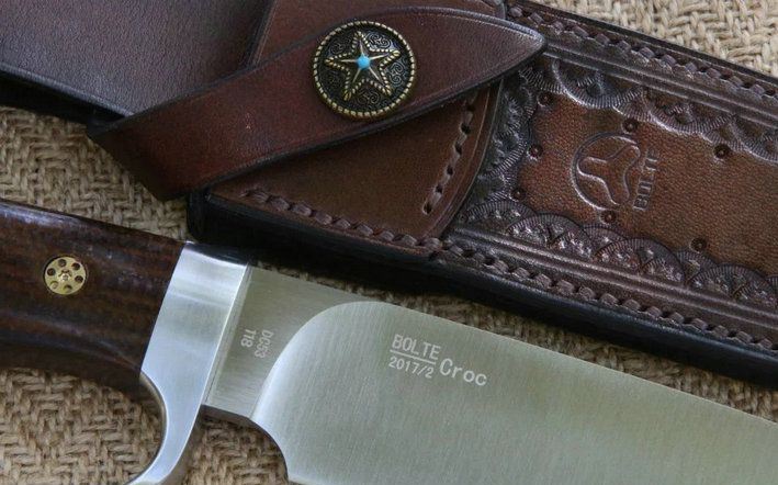 博尔特鳄鱼博伊刀 全长: 293mm 刃长: 170mm 刃厚: 5.9mm 柄长:123mm 刀最宽处:37mm 表面:刃面独特精美纯手工幼拉丝和护手幼拉丝处理。 类型: 以锋利度.砍捎,韧性保持度.最出色,和独特的做工 整刀一体龙骨包柄,用T8螺丝刀可拆装。 开刃方式:二次开刃 刃材: DC53 热处理方式:真空淬油深冷热处理 硬度: 60-61HRC 柄材:太空蛇纹柄和土豪金马赛克螺丝对锁钉 包 装:精美黑纸盒+护刀油+伞绳 毛重:610克(含包装)