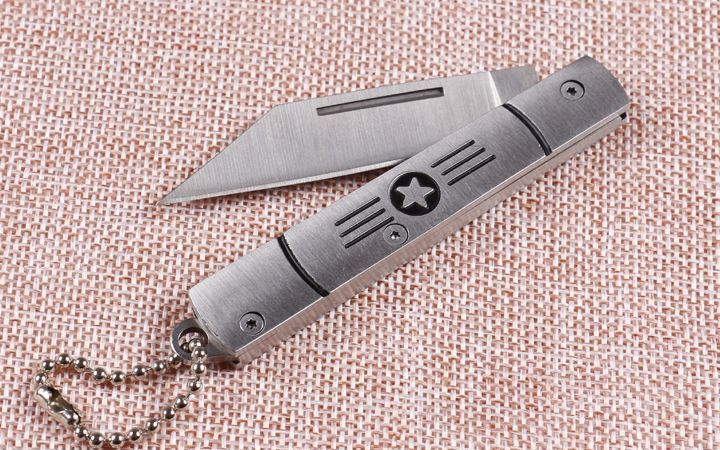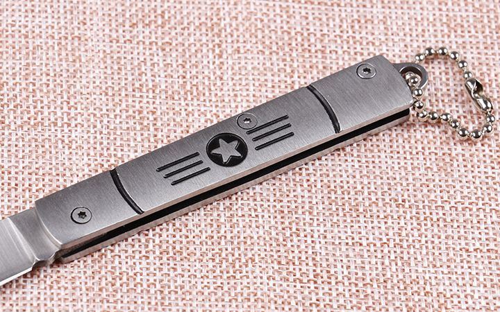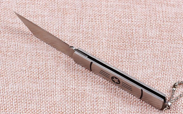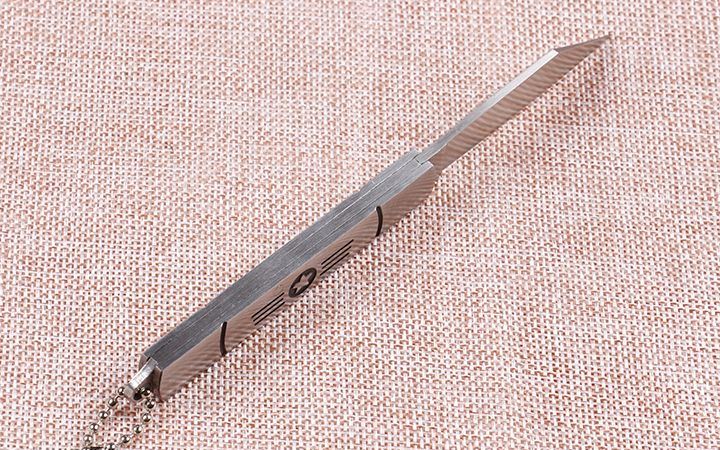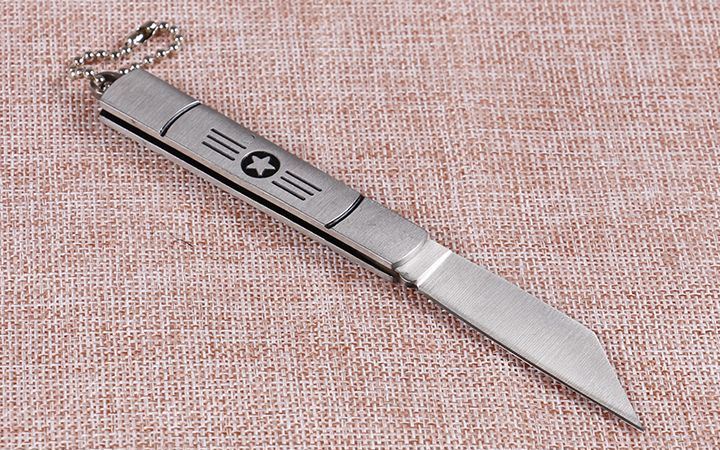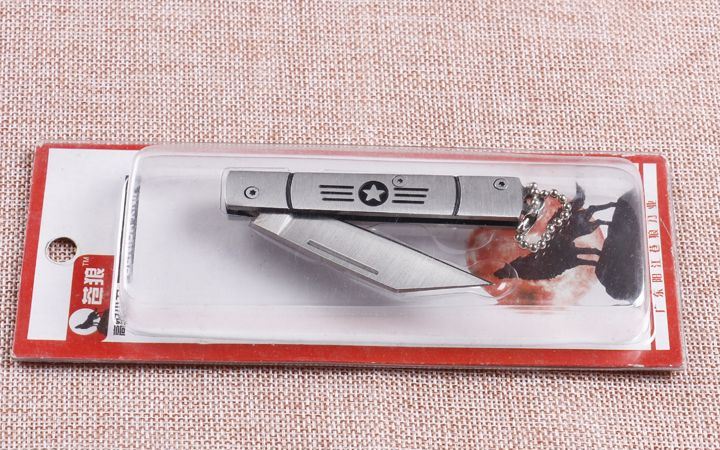 苍狼6033航星折刀 全 长:14.5cm 刃 长:5.5cm 柄 长:8.4cm 刃 宽:1cm 刃 厚:2.1mm 刃 材:420 重 量:54g(含包装) 硬 度:54HRC 表 面:砂光 柄 材:全钢 包 装:插卡包装