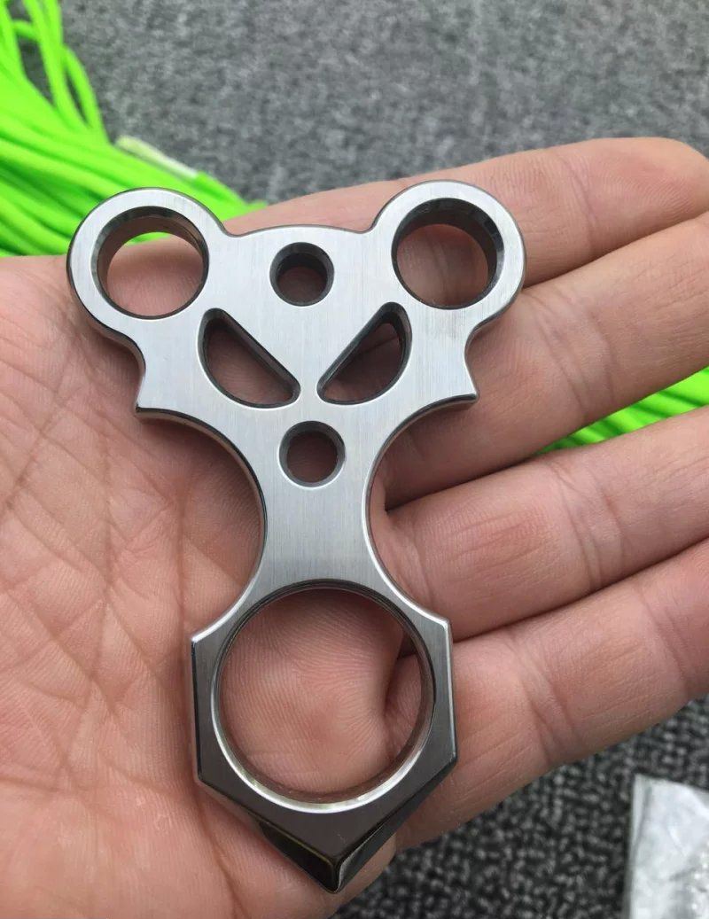 小熊指扣破窗锥 材质:不锈钢 长度:82mm 宽度:54.8mm 厚度:6.2mm 硬度:57 里外均作镜光处理.表面拉丝. 全部打磨顺滑.不咯手.手感舒适.金属感强.尖部打击头.可作破窗锥, 打击玻璃.亦可作挂饰摆件, 珠链挂在脖子上装饰