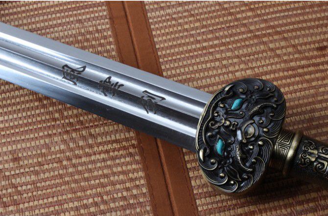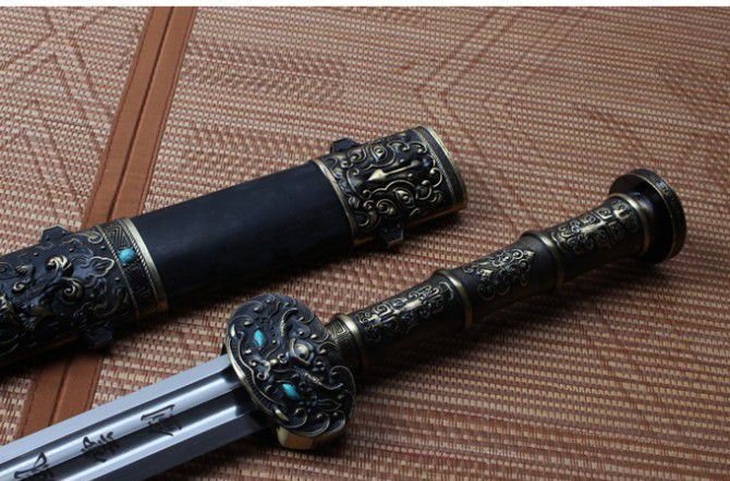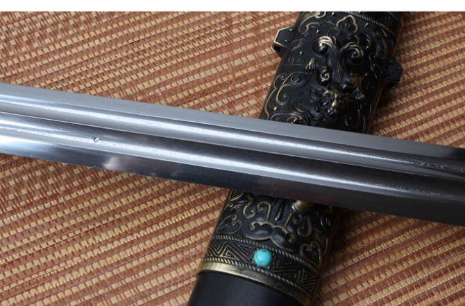 【规格】 全长:96.2cm左右,刃长:63cm,柄长:27.0cm,刃宽:4.2cm,刃厚:0.9cm 重量3322g含包装 【刃材】 花纹钢手工打造 【工艺】 花纹钢手工打造 古法热处理 手工精细磨 【鞘材】 名贵檀木 【装具】 金装 【硬度】 57 HRC 【柄材】 名贵檀木 【赠品】 锦盒 【其他】 手工产品,稍有差别,请以实物为准