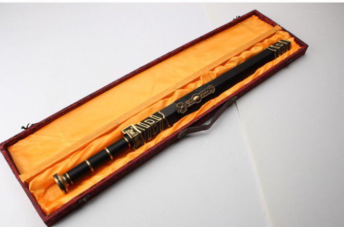 【规格】 全长:77cm左右,刃长:54cm,柄长:21cm,刃宽:3.8cm,刃厚:0.9cm 【刃材】 花纹钢手工打造 【工艺】 花纹钢手工打造 古法热处理 手工精细磨 【鞘材】 名贵檀木 【装具】 金装 【硬度】 57 HRC 【柄材】 名贵檀木 【赠品】 锦盒 【其他】 手工产品,稍有差别,请以实物为准