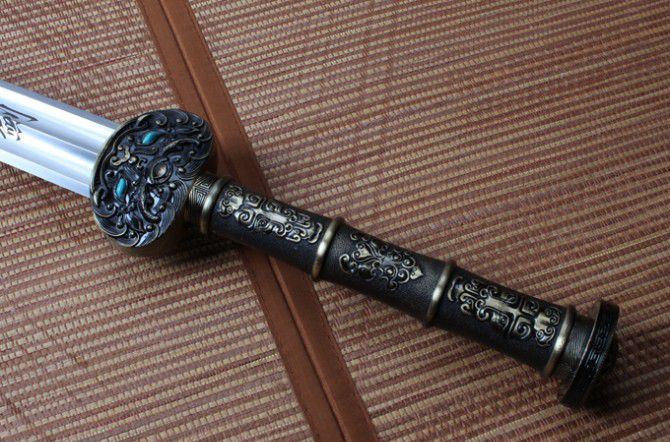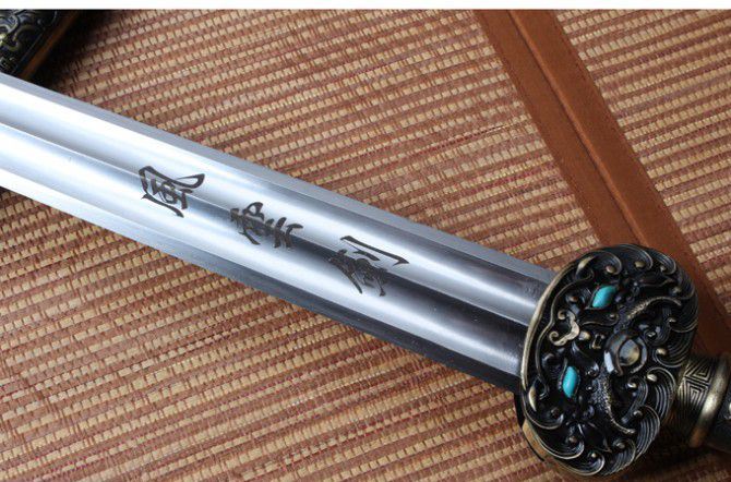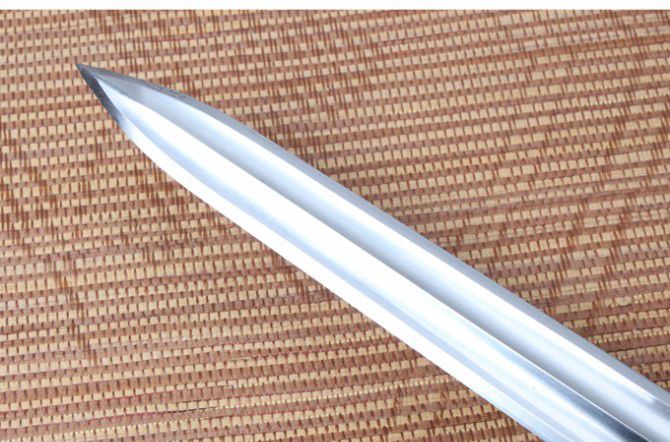 【规格】 全长:96.2cm左右,刃长:64cm,柄长:27.0cm,刃宽:4.2cm,刃厚:0.9cm 重量2946g含包装 【刃材】 碳钢手工打造 【工艺】 碳钢手工打造 古法热处理 手工精细磨 【鞘材】 名贵花梨木 【装具】 金装 【硬度】 57 HRC 【柄材】 名贵檀木 【赠品】 锦盒 【其他】 手工产品,稍有差别,请以实物为准