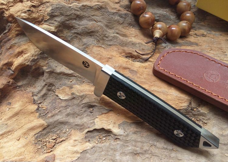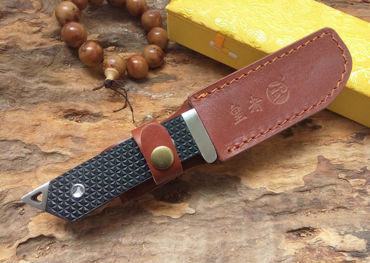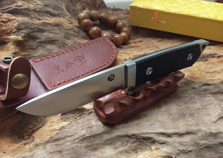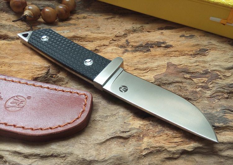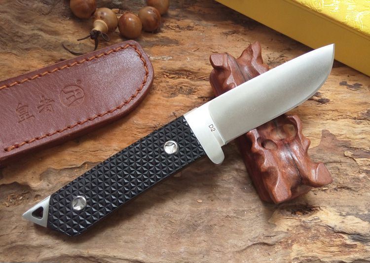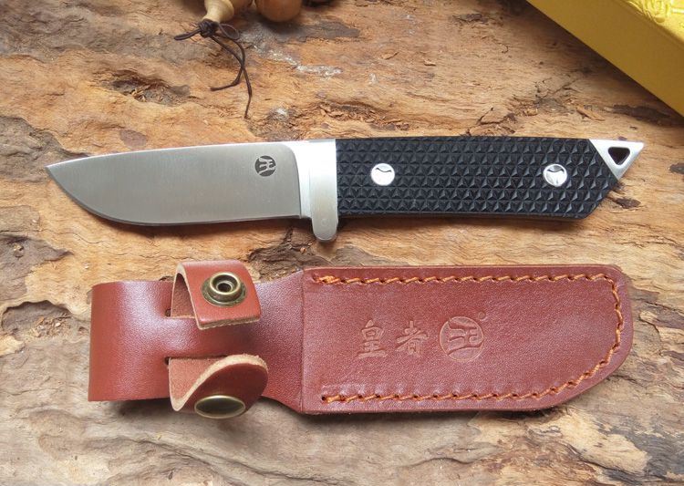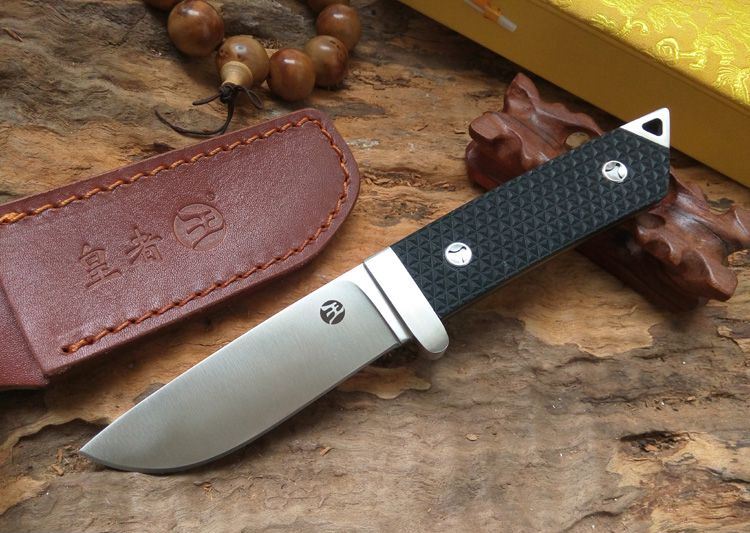 全长:230mm 刃长:98mm 柄长:128mm 刃厚:4mm 刃宽:30mm 刃材:D2 柄材:G10 硬度:60HRC 净重:220g 重量:425g(含包装) 备注:配真皮刀套和锦盒 此刀由皇者品牌原创设计,整刀贵格霸气,彰显坐拥江山之气势。刀身采用高硬度D2钢龙骨一体制作,刀柄采用G10搭配双钢头设计,刀柄末端三角形钢头更能轻易击碎玻璃和各种硬物,配送的真皮刀套和锦盒包装使之送礼体面,便于收藏。皇者名刀,刀之皇者,好刀配豪杰,你值得拥有!