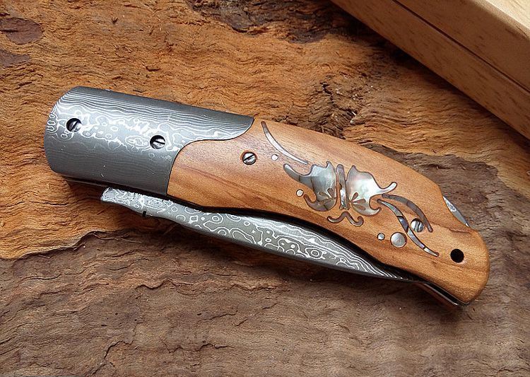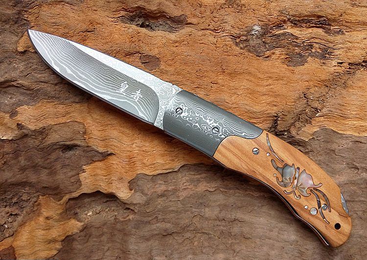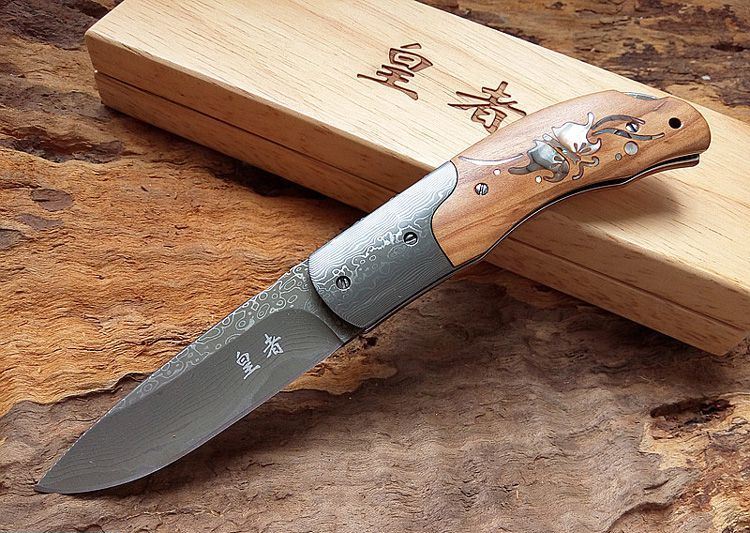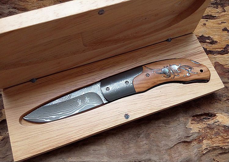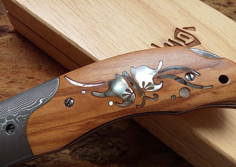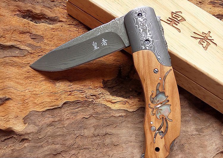该刀采用进口大马士革钢锻造制作,花纹图案如行云似流水,美妙异常!柄材由橄榄木+贝壳+大马士革钢完美组合,看那镶嵌在橄榄木上的蝴蝶栩栩如生,这可是由资深刀匠手工制作而成,还有刀背上的竹节纹,让整刀效果立体感更好,线条更美!该刀手工精细、手感好,还配送精美高档橡木盒,是您收藏或馈赠亲友的绝佳选择!皇者刀具,好刀配英雄,您值得拥有!