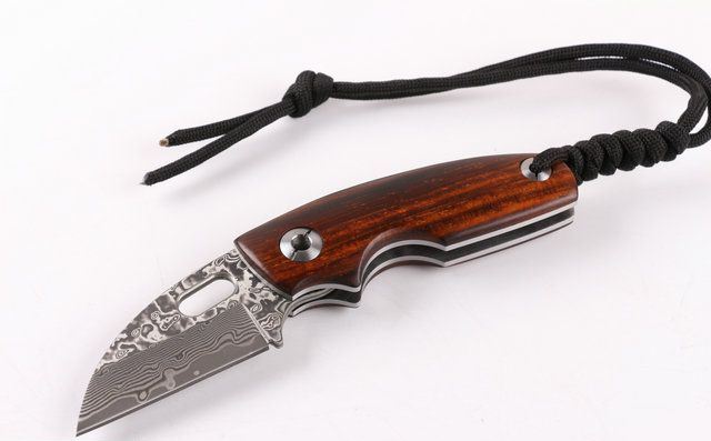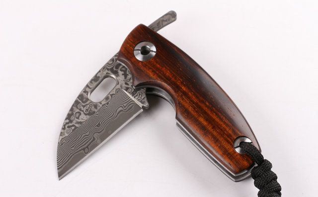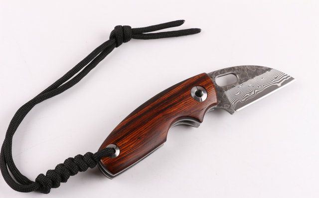 自由狼小剃刀(大马士革) 全 长:153mm 刃 长:64mm 柄 长:95mm 刃 宽:32mm 刃 厚:3.0mm 刃 材:大马士革钢 重 量:200g (含包装) 硬 度:58-60HRC 表 面:原有大马士革纹 柄 材:天然黄檀木手柄,木纹纹路清楚 锁 型:无锁 螺 丝:所有螺丝420不锈钢硬度HRC45。内置铜垫,刀身坚固,不会摇头.黄檀木和钢片之间不会有空隙,是刀匠做好刀的可见之处. 结 构:无锁 其 它;礼品盒包装