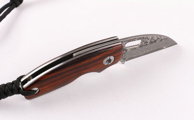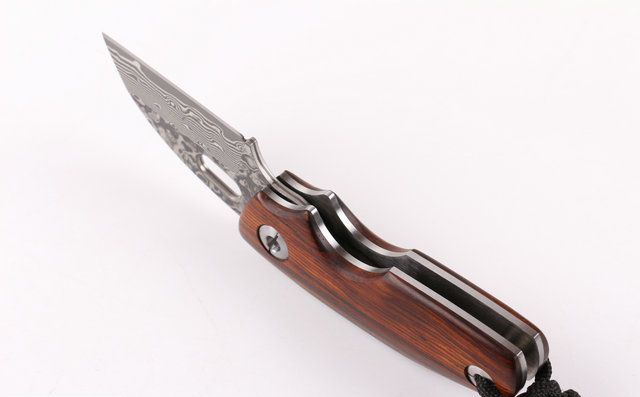 全 长:153mm 刃 长:64mm 柄 长:95mm 刃 宽:32mm 刃 厚:3.0mm 刃 材:大马士革钢 重 量:200g (含包装) 硬 度:58-60HRC 表 面:原有大马士革纹 柄 材:天然黄檀木手柄,木纹纹路清楚 锁 型:无锁 螺 丝:所有螺丝420不锈钢硬度HRC45。内置铜垫,刀身坚固,不会摇头.黄檀木和钢片之间不会有空隙,是刀匠做好刀的可见之处. 结 构:无锁 其 它;礼品盒包装