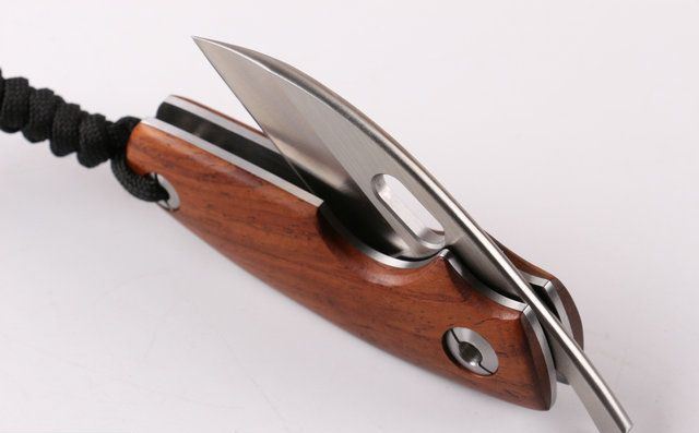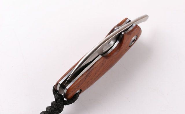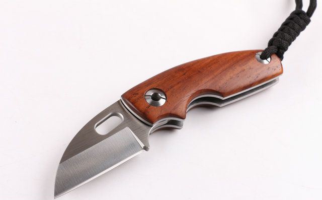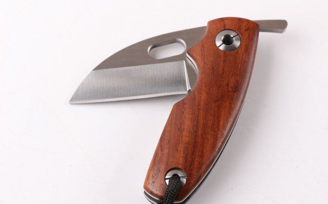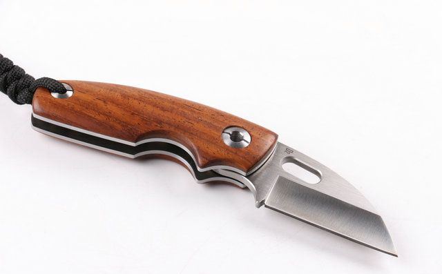 自由狼小剃刀(拉丝) 全 长:153mm 刃 长:64mm 柄 长:95mm 刃 宽:32mm 刃 厚:3.0mm 刃 材:9CR14MOV 重 量:200g (含包装) 硬 度:58-60HRC 表 面:拉丝伴沙光 柄 材:天然黄檀木手柄,木纹纹路清楚 锁 型:无锁 螺 丝:所有螺丝420不锈钢硬度HRC45。内置铜垫,刀身坚固,不会摇头.黄檀木和钢片之间不会有空隙,是刀匠做好刀的可见之处 结 构:无锁 其 它;礼品盒包装