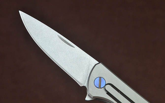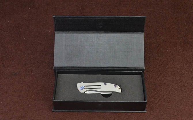 总 长: 122mm 刃 长: 52mm 柄 长: 70mm 刃 厚: 2.4mm 刃 材: D2真空处理 刃 面处理:石洗 柄 材: 钛合金 硬 度:58-59 锁 定: 无锁 重 量: 100克(含包装) 包 装: 原厂礼品盒