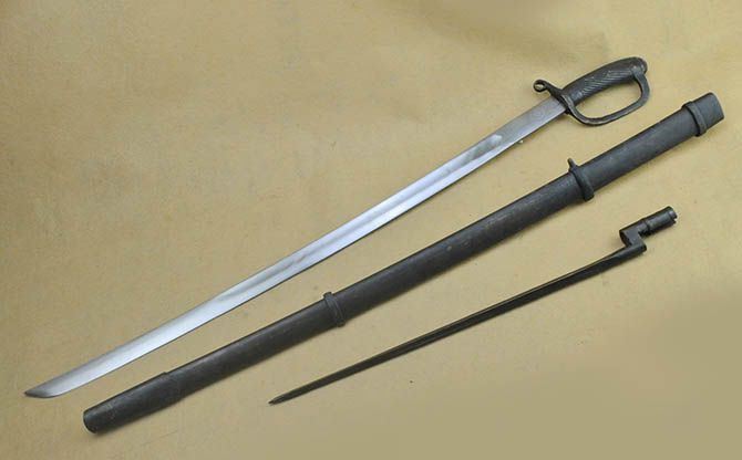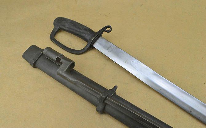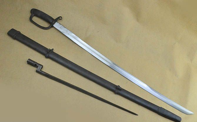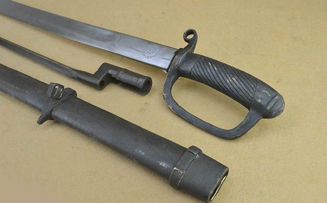 苏联骑兵刀,大概上世纪20年代生产,高加索式样.外鞘带1891年式莫辛纳干步枪配用的四棱式刺刀一只
