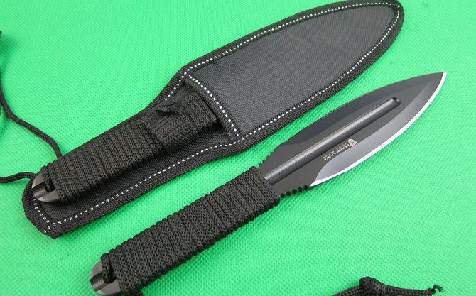 全长;24.1CM 刃长;13.2CM 刃厚;0.46CM 最宽;3.8CM 刃材料;5CR17 表面;发黑 重量;220克 刀鞘;尼龙+加厚白合