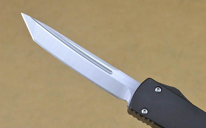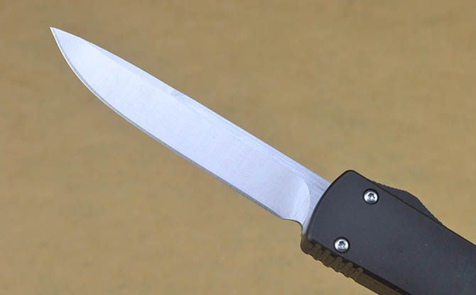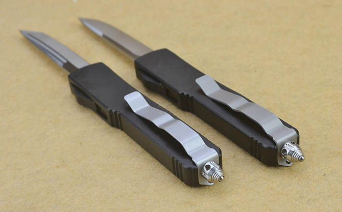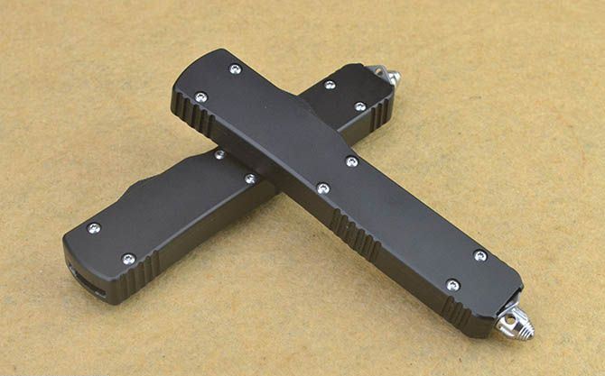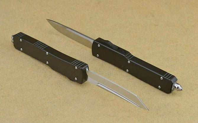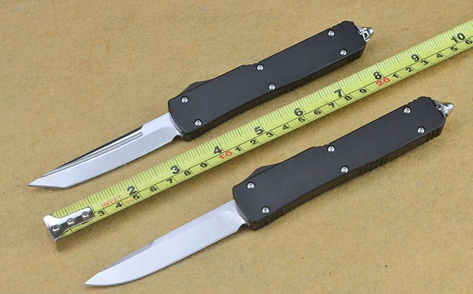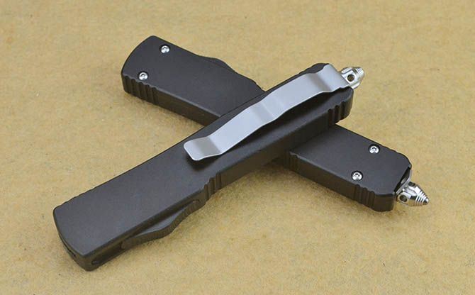 微技术121滑面直出弹簧刀(尖头、方头) 全 长: 21.5cm 刃 长: 8.3cm 刃 厚: 3mm 刃 宽: 1.5cm 柄 长: 12.5cm 刃 材: 440C (顶级钢材) 硬 度: 58-60HRC 毛 重: 128g(含包装) 表 面: 拉丝 柄 材: 航空铝 刀 套: 无 锁 闭: 直出弹簧刀 包 装: 硬纸盒 备 注: 带玻璃锥、腰夹