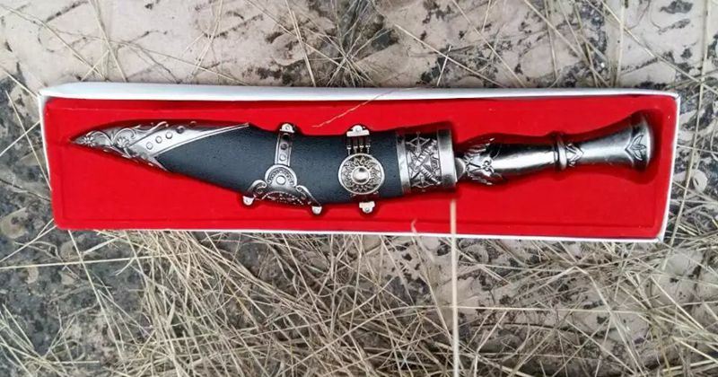 新款迷你尼泊尔狗腿刀镜面版 全长:29CM 刃长:18CM 柄长:11CM 钢材:5CR13 柄材:合金 刃厚:0.4CM