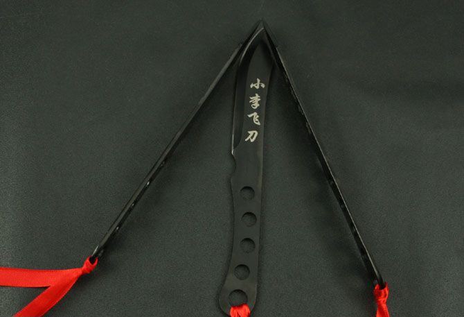 第二代小李飞镖 钢材:3Cr13Mov 长度:17cm 刃宽:2cm 刃厚:2.5cm(最宽处) 柄长:7.5cm 总重:140g(含包装) 表面:喷黑色 刀套:尼龙套 其它:三支装