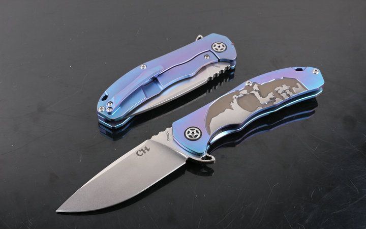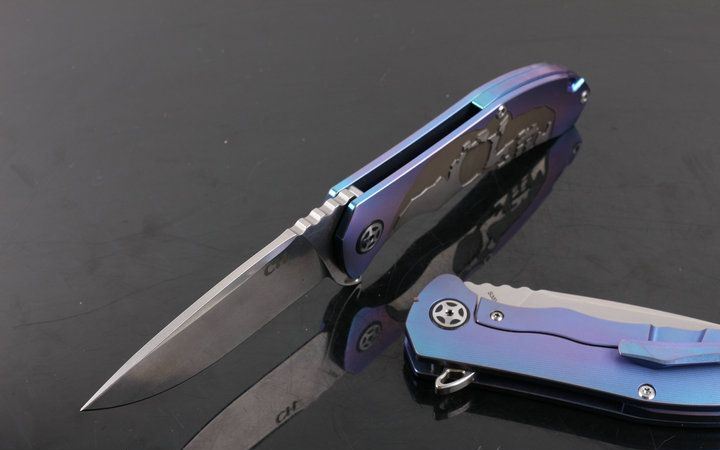 CH3504高端全钛柄战术球轴承翻转折刀(全手工版)