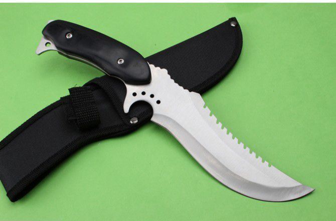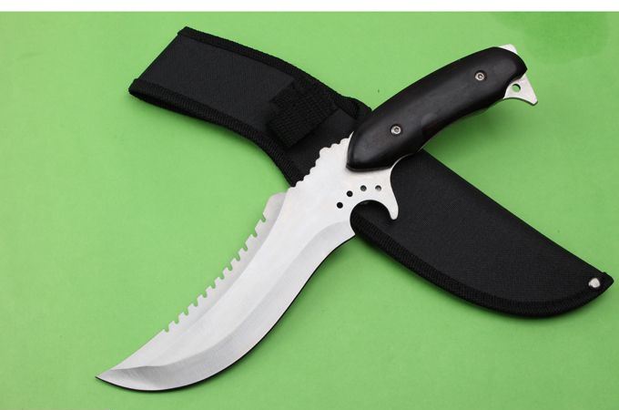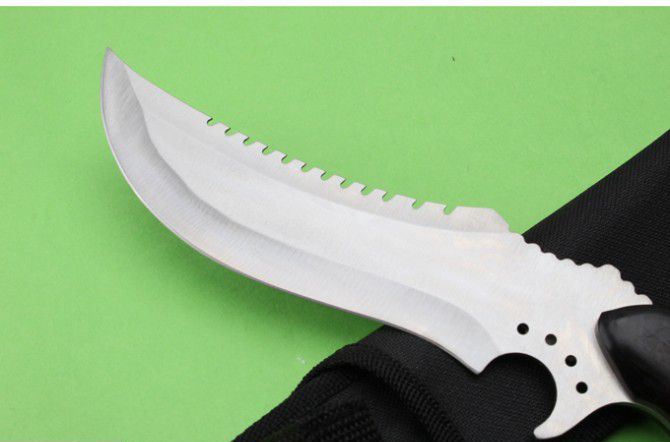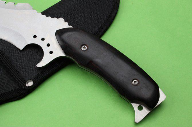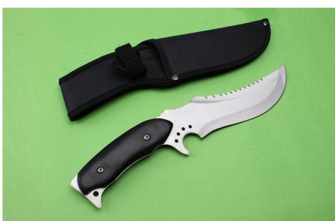 黑鹰三叉戟战术刀 全 长:290mm 刃 长:171mm 柄 长:116mm 刃 宽:45mm 刃 厚:2.8mm 刃 材:5Cr13Wov 重 量:260(含刀套) 硬 度:56HRC 表 面:沙光 柄 材:一体钢+彩木 锁 型:定锁 其 他:配牛津套