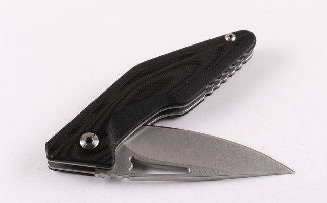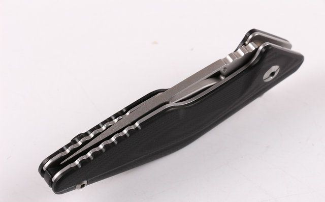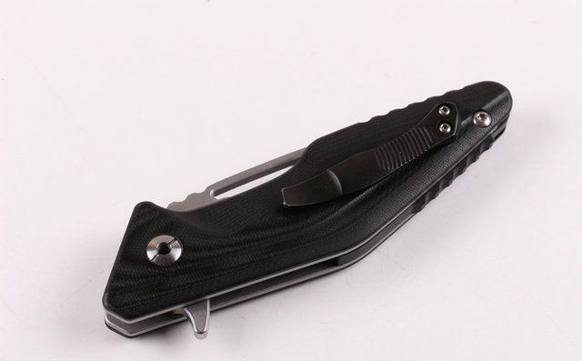 全长:210mm 刃长:85mm 柄长:128mm 刃宽:31mm 刃厚:4.0mm 刃材:D2(深冷处理) 重量:250g(含包装) 硬度:58-60HRC 表面:石洗 柄材:手柄钢片+黑G10经CNC加工 刀夹:TC4钛合金背夹 螺丝:所有的螺丝420不锈钢硬度HRC45,全CNC精雕加工。 结构:分体组合锁杆式线锁结构,锁刀接触镶嵌合金粒,陶瓷定位珠,内置双排滚珠轴承 其他:礼品盒