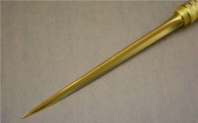 土豪金水管三棱 刃长:20.5M 全长:35.5CM(最长) 管径:2.5CM 重量:650g(含包装) 硬度:56HRC