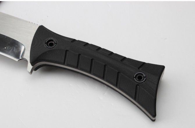 全 长:43cm 刃 长:29cm 柄 长:14cm 刃 宽:6.8cm(最宽处) 刃 厚:6mm 刃 材:9CR18Mov 重 量:820克毛重 硬 度:59HRC 表 面:镜光拉丝 柄 材:G10柄 锁 型:定锁 其 他:配硬纸盒+K鞘