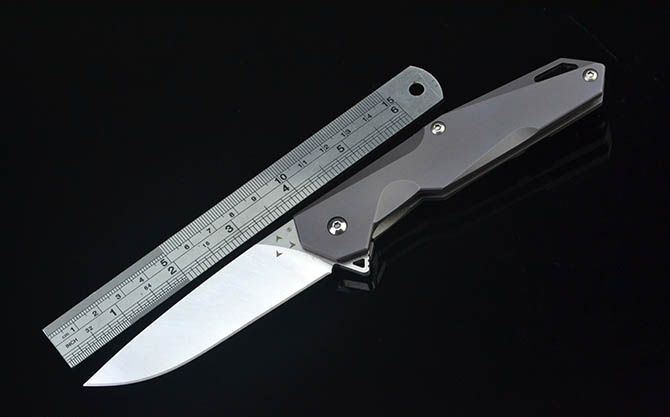 刃材:9cr18 硬度:60-62HRC 全长:21.2CM 刃长:9.5CM 刃厚: 0.32CM 刃宽:2.5CM (最宽处) 柄长: 12.3CM 刃面:CNC数控开磨丝光 柄材: 一体钛合金 重量:113克 锁定: 一体线锁 备注:带腰夹