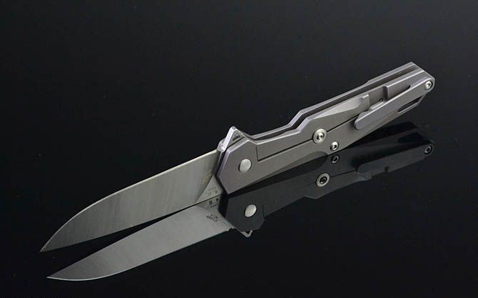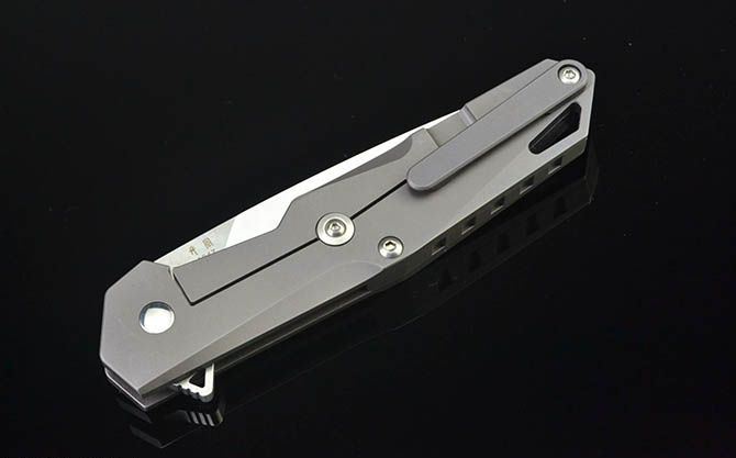 三叉戟1047钛柄折刀 刃材:9cr18 硬度:60-62HRC 全长:21.2CM 刃长:9.5CM 刃厚: 0.32CM 刃宽:2.5CM (最宽处) 柄长: 12.3CM 刃面:CNC数控开磨丝光 柄材: 一体钛合金 重量:113克 锁定: 一体线锁 备注:带腰夹