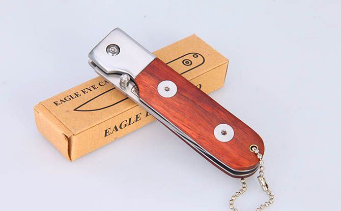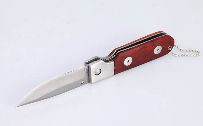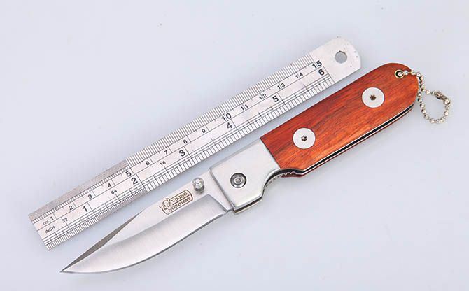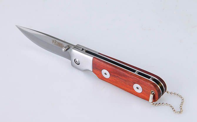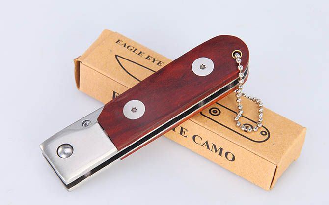 全 长:18cm 刃 长:7.5cm 柄 长:10cm 刃 宽:2.1cm 刃 厚:2.8mm 刃 材:3Cr13Mov 重 量:108g(含包装) 硬 度:54HRC 表 面:砂光 柄 材:钢头+红酸枝柄片 锁 型:线锁 包 装:纸盒 备 注:带挂链
