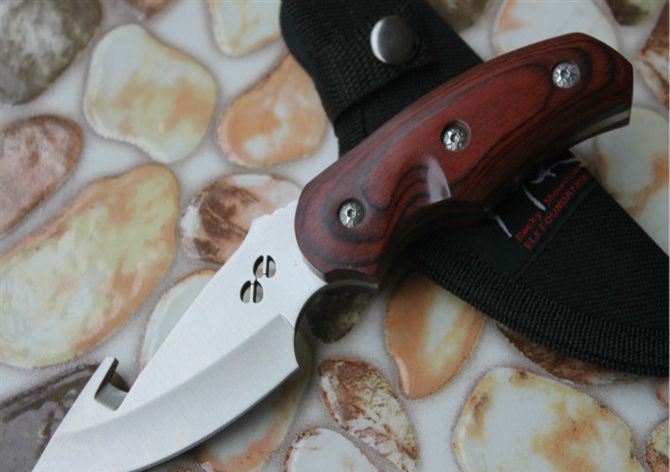 BUCK076麋鹿带钩直刀 全 长: 20.5cm 刃 长: 8.5cm 刃 宽: 4cm(最宽处) 柄 长: 11cm 刃 厚: 0.32cm 刃 材: 5Cr13Mov 硬 度: 57RHC(高硬度) 表 面: 砂光 柄 材: 刀身贯穿刀柄,两面夹彩木 净 重: 200克(含套) 利 度:高度锋利,可刮汗毛 其 他:龙骨结构,耐磨尼龙战术刀套 品 质:高品质,出口OEM贴牌代工