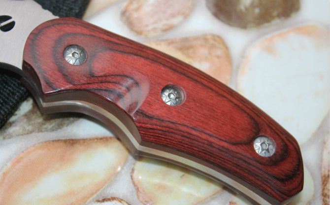 全 长: 20.5cm 刃 长: 8.5cm 刃 宽: 4cm(最宽处) 柄 长: 11cm 刃 厚: 0.32cm 刃 材: 5Cr13Mov 硬 度: 57RHC(高硬度) 表 面: 砂光 柄 材: 刀身贯穿刀柄,两面夹彩木 净 重: 200克(含套) 利 度:高度锋利,可刮汗毛 其 他:龙骨结构,耐磨尼龙战术刀套 品 质:高品质,出口OEM贴牌代工