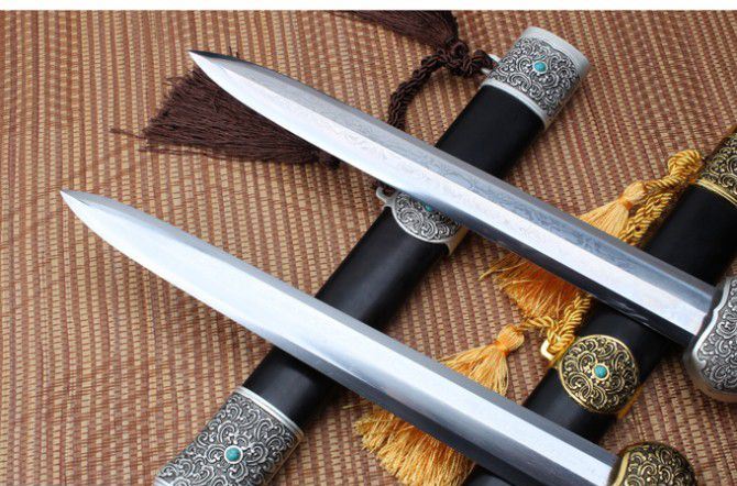 【规格】全长:53.3cm左右,刃长:30cm,柄长:19.5cm,刃宽:3.5cm,刃厚:0.9cm 【刃材】花纹钢手工打造 【工艺】花纹钢手工打造 古法热处理 手工精细磨 【鞘材】名贵檀木 【装具】银装 【硬度】57 HRC 【柄材】名贵檀木 【赠品】锦盒 【其他】手工产品,稍有差别,请以实物为准